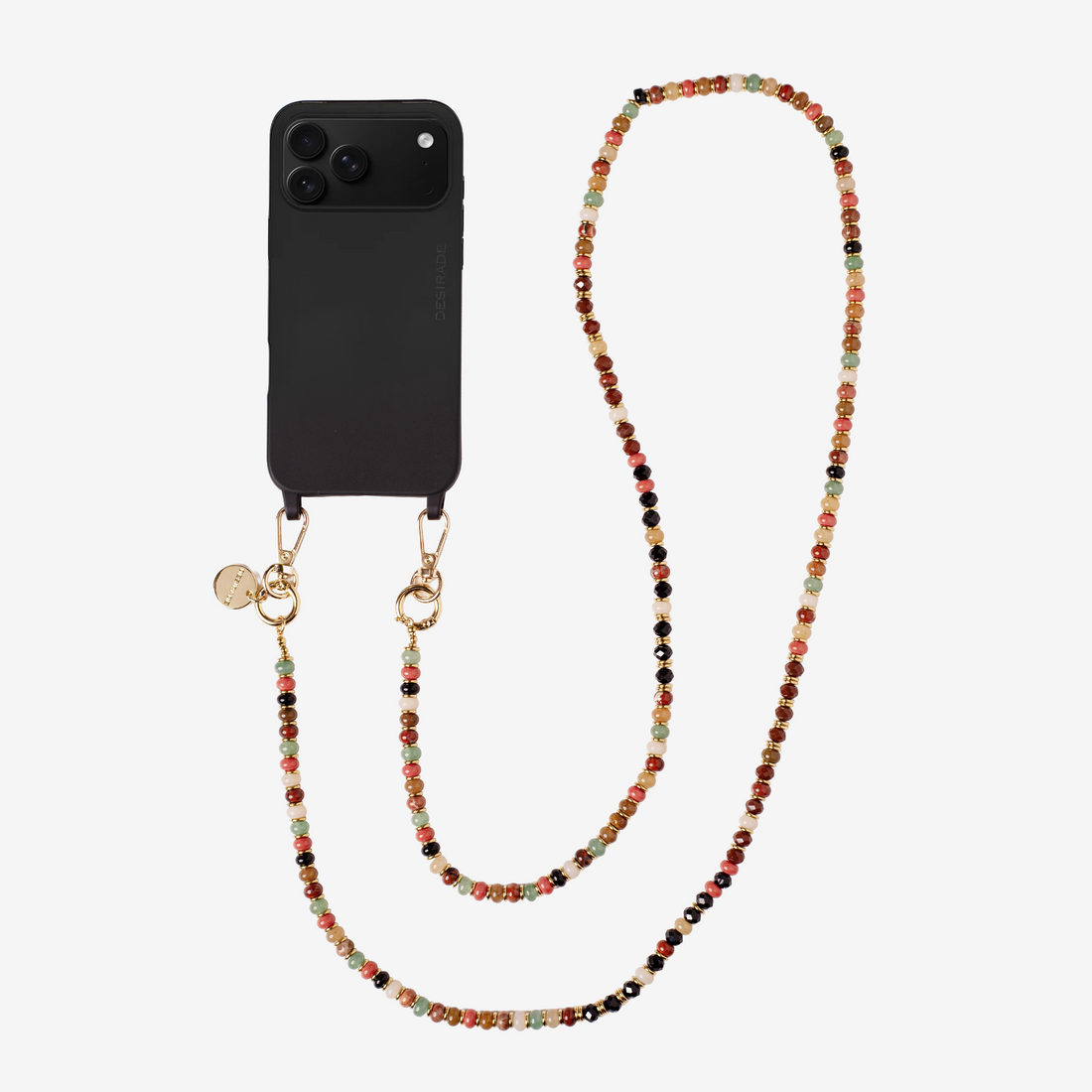 Handmade crossbody phone chains with premium details and Desirade logo. 120 cm fashion accessories that turn your phone into a piece of style.