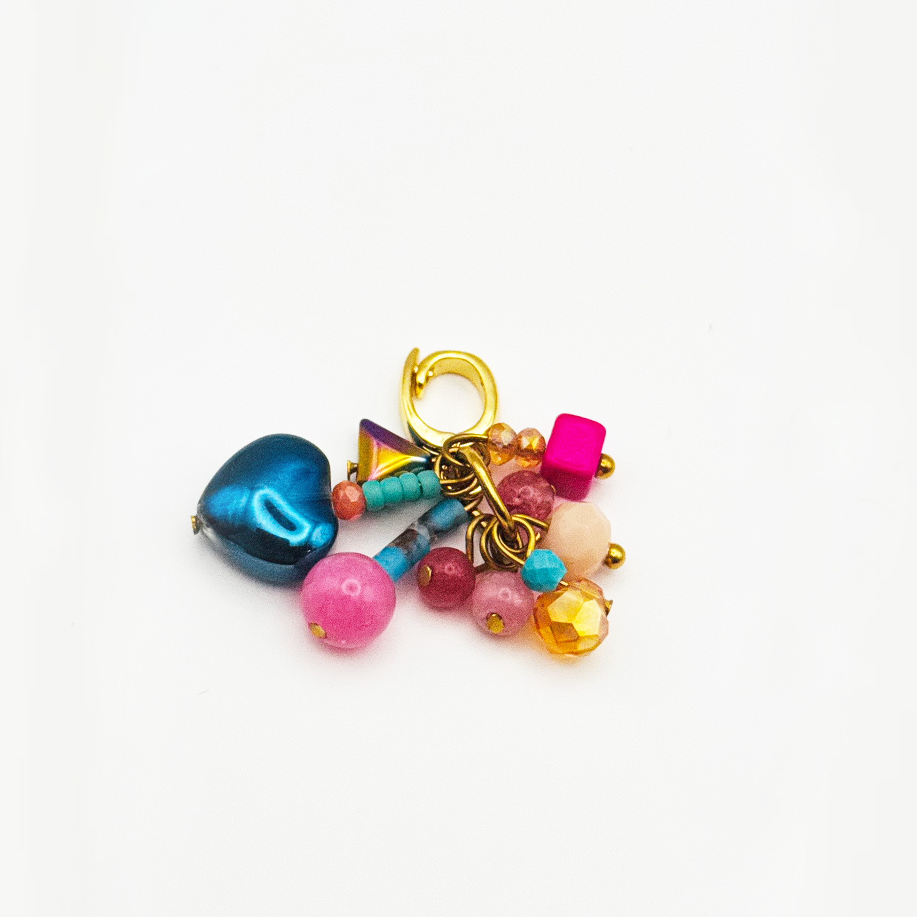 A vibrant collage of colorful beads and a deep blue heart. Playful, eclectic and full of personality.