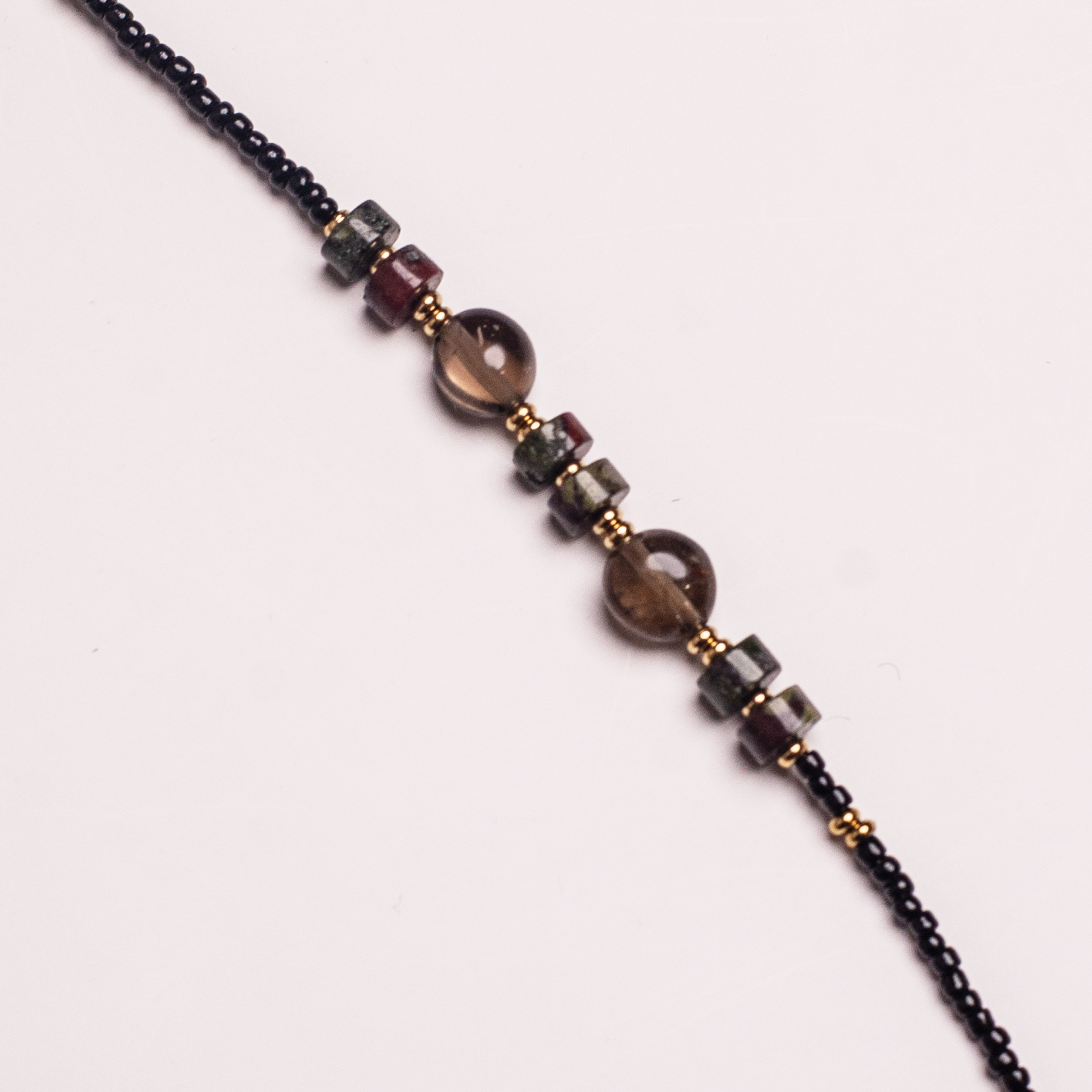 CRISTAL TÈ este strapul care aduce eleganța discretă a nuanțelor naturale într-un accesoriu practic și sofisticat pentru telefonul tău. Realizat dintr-un mix armonios de Tea Crystal, pietre naturale și mărgele fine din sticlă neagră, acest strap combină tonurile calde și texturile naturale într-un design subtil și modern.