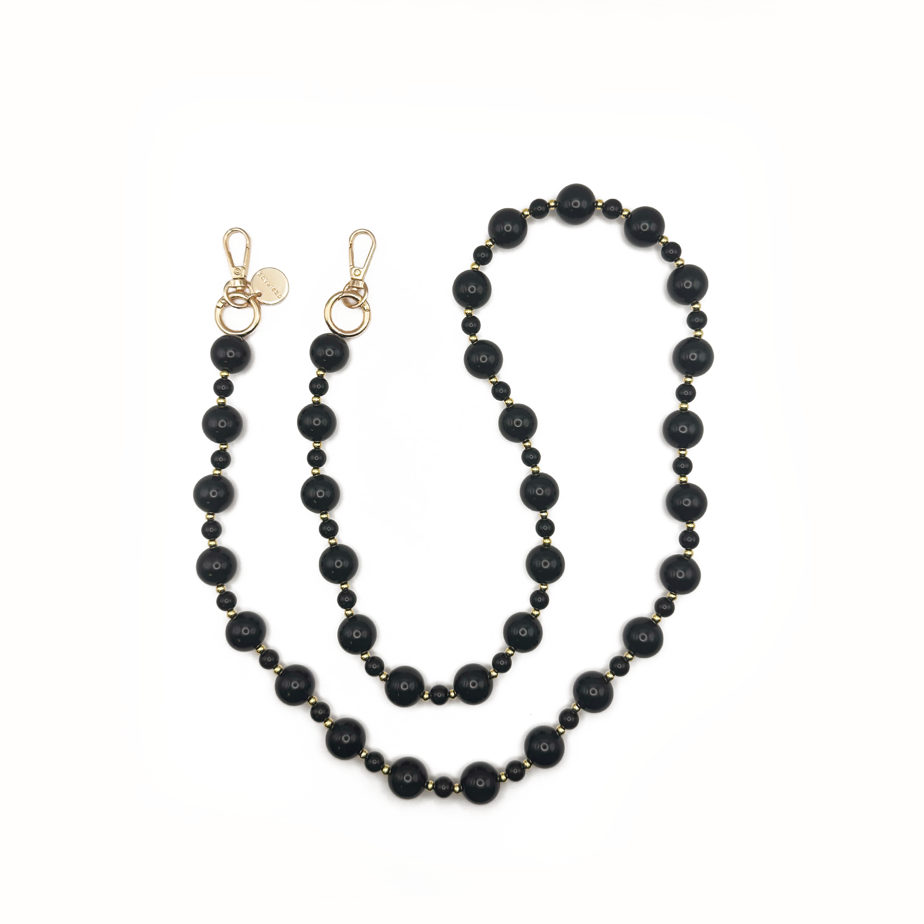 The Onyxe Luxe Crossbody is the long version (120 cm) of the Onyxe collection, created for women who want a sophisticated, modern and easy-to-wear accessory. Made of premium black beads and minimalist gold accents, the strap has a timeless look, perfect for both elegant and casual outfits.